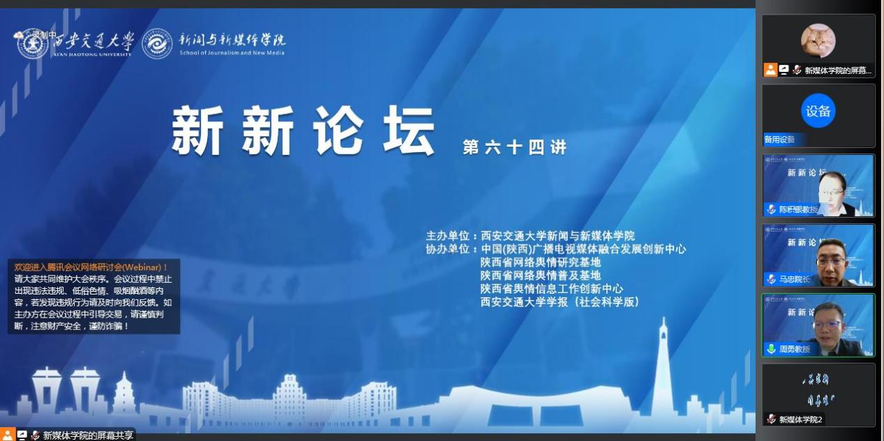 2022年11月4日早,新新论坛第六十四讲在腾讯会议线上顺利举行。本次新新论坛特别邀请到了中国人民大学周勇教授和黑料网