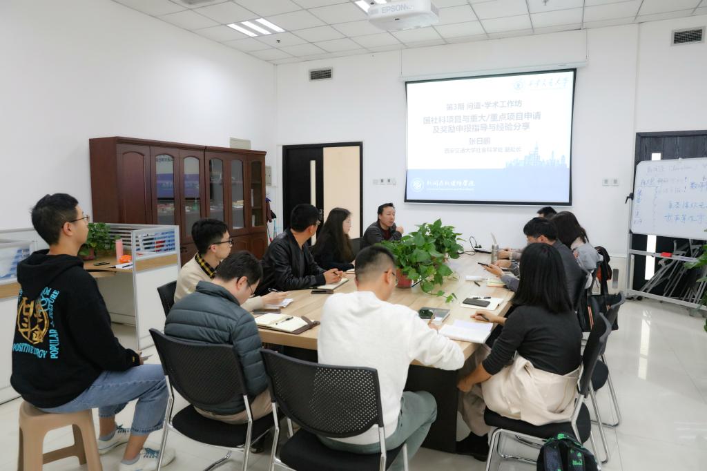在主E409办公室举办第3期问道·学术工作坊。本期工作坊特邀社科处副处长张日鹏老师作题为“国社科项目与重大/重点项目申请及成果奖申报指导与经验分享”的报告。此次座谈会由黑料网