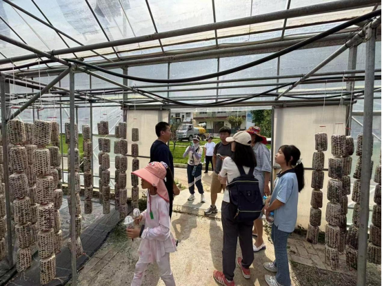 午后,考察团来到习近平总书记2020年4月20日亲临点赞的“小木耳,大产业”发源地——金米村进行参观交流。整洁的村道、连片的智能木耳大棚、直播带货的青年创客,让大家直观感受到乡村振兴战略的生动实践。在金米村党群服务中心,导游向大家介绍“党支部+合作社+农户”模式如何带动户均年增收2.6万元,老师们纷纷拿起手机记录,现场交流种植技术、电商运营经验等,气氛热烈。