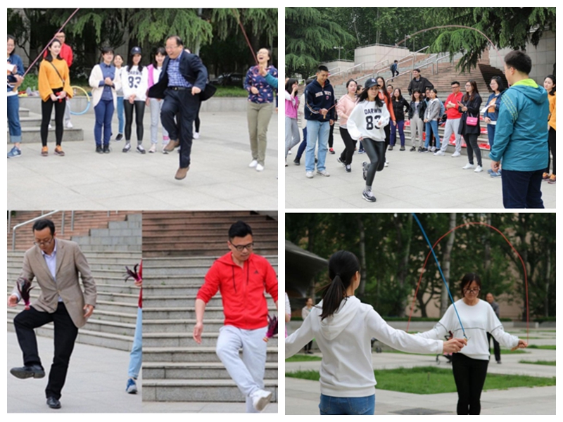 最后,教职工党员和学生党员共同开展了多个互动活动。通过跳大绳、齐心协力等团体游戏和呼啦圈、踢毽子等个人游戏,拉进了师生之间的距离,展现了积极向上、团结奋发的精神面貌。大家纷纷表示,此种寓教于乐、形式灵活的组织生活会应该多举办,让大家在组织和互动中实现情感的交流,在情感的交流中实现思想的沟通,在思想的沟通中实现认识的升华。
