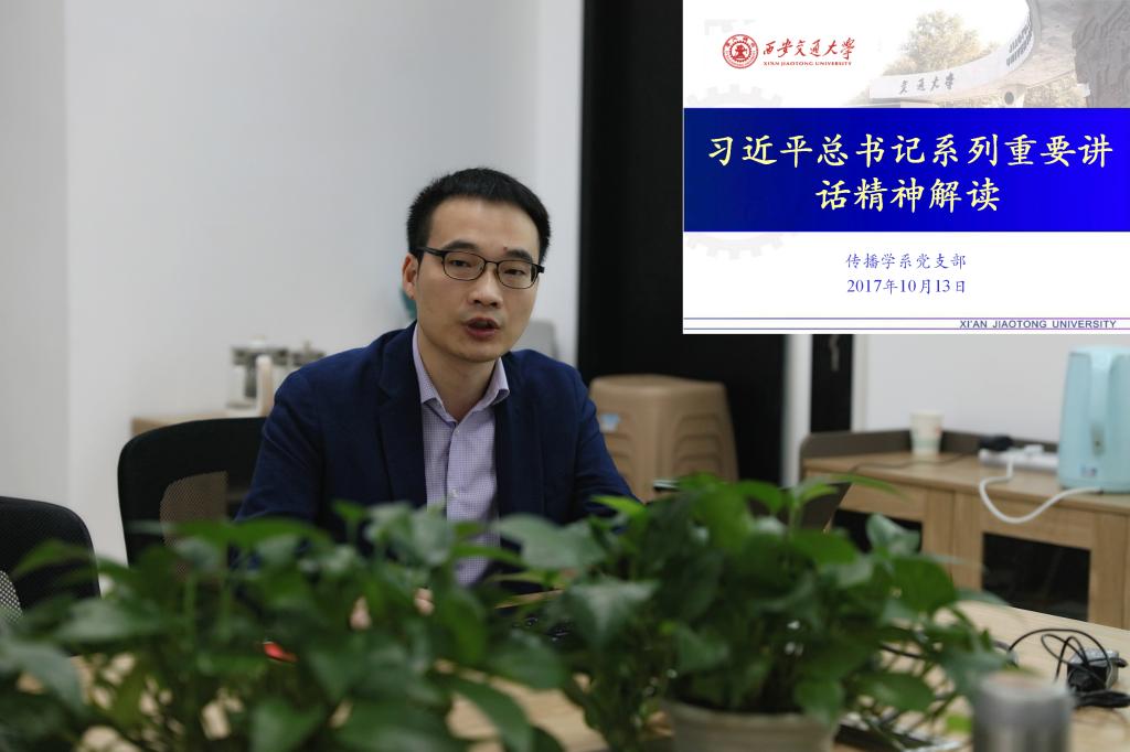 2017年10月13日,传播学系党支部成员在学院412办公室共同学习了习近平总书记7.26重要讲话。
