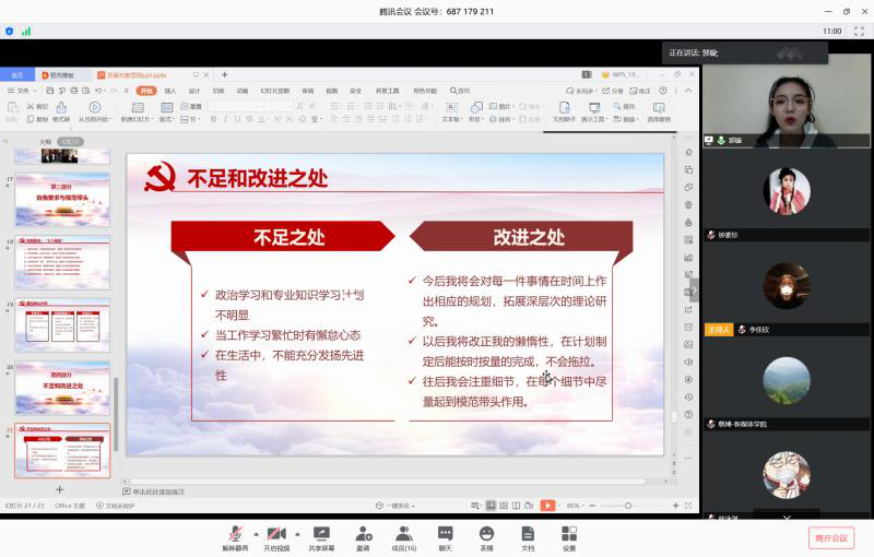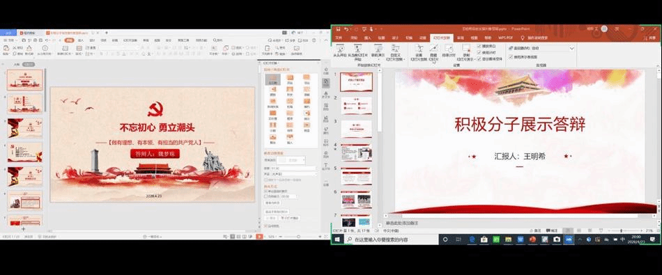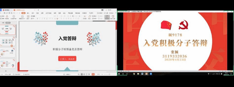 参与本次线上展示的入党积极分子共7人,分别是华昱、廖子千、张颖、王明希、林泳淇、魏梦珠及郭璇。按照陕西省发展党员工作规程,7名入党积极分子经过申请入党、入党积极分子一年以上的确定和培养教育,现进入发展对象的确定和考察阶段。此次答辩根据“全面考察、择优选取”的原则,严格遵循《黑料网