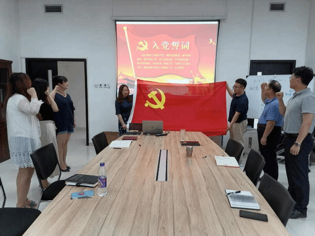 在感人肺腑的战役故事熏染下,会议最后申楠同志带领新闻系全体支部党员面向党旗,再次重温了入党誓词。建党辉煌99载,党旗必将在人民最需要的地方永远飘扬,因为我们有一个共同的名字——“共产党员”。