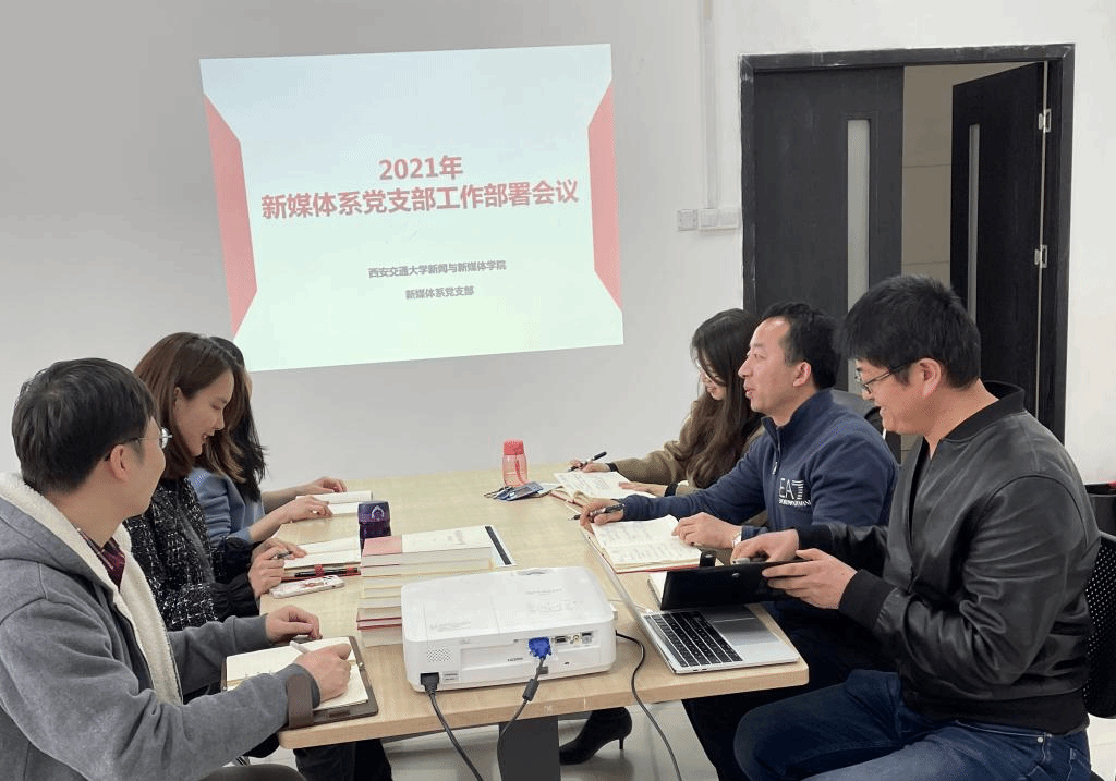 的作风建设年。因此,2021年新媒体系党支部全部工作都应围绕以上主题开展。全体党员要以党史学习教育为重点,以党建与业务融合发展为主线,扎实落实学校和学院的发展目标和战略任务,以优异成绩迎接建党100周年。另外,牛耀红向新媒体系全体党员汇报了2021年支部工作计划,并就如何提升党支部工作成效征求了意见。
