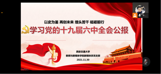 11月30日,新媒体系党支部召开党的十九届六中全会精神专题学习会,支部全体党员参加了会议。