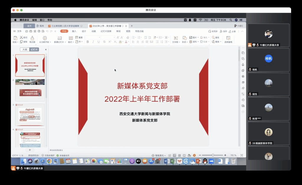 2022年4月29日,根据学校党委组织部《关于开展好2022年春季学期党支部组织生活的通知》要求,新媒体系党支部组织召开了2022年度支部工作部署会议。会议由支部书记牛耀红主持,支部全体党员参加了会议。