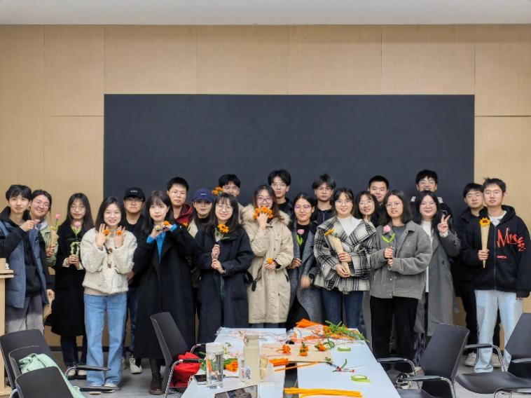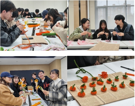 分享环节结束后,为了拉近支部成员间的心理距离、增强支部凝聚力,在动手实践和互动交流中帮助大家在繁忙的学业中舒缓身心,支部负责人精心准备了扭扭棒自制郁金香、向日葵和柿子的体验环节。经过一场激动人心的听歌识曲游戏比赛后,前三名幸运儿获得了精美的钥匙扣扭扭棒材料包。随后,大家结合自己的喜好,根据视频教程动手制作花朵。现场气氛融洽,大家相互交流制作经验,积极展示自己的制作成果。