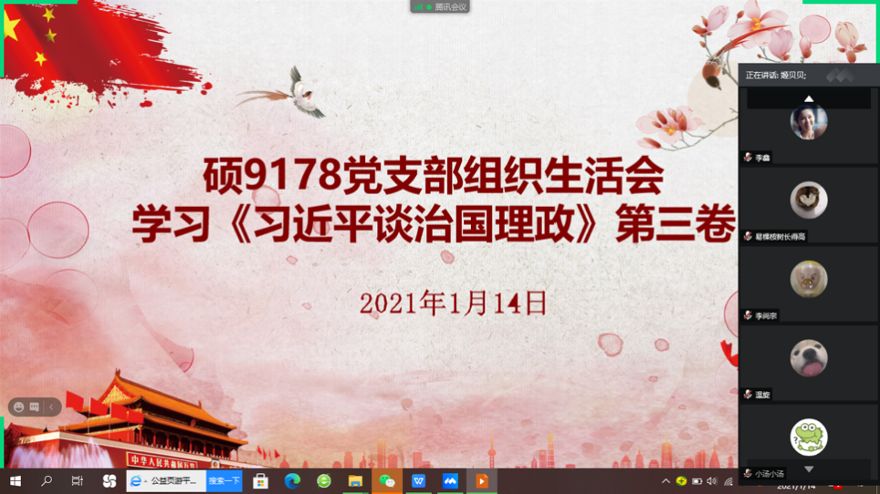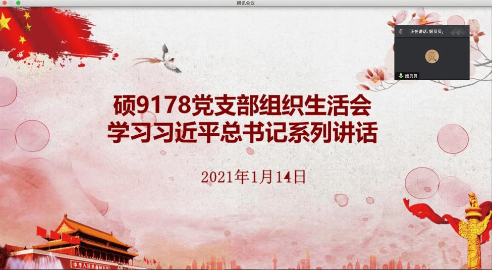 硕9178党支部全体成员于线上召开了2020年度组织生活会暨民主评议党员会。会议由党支部书记姬贝贝主持。