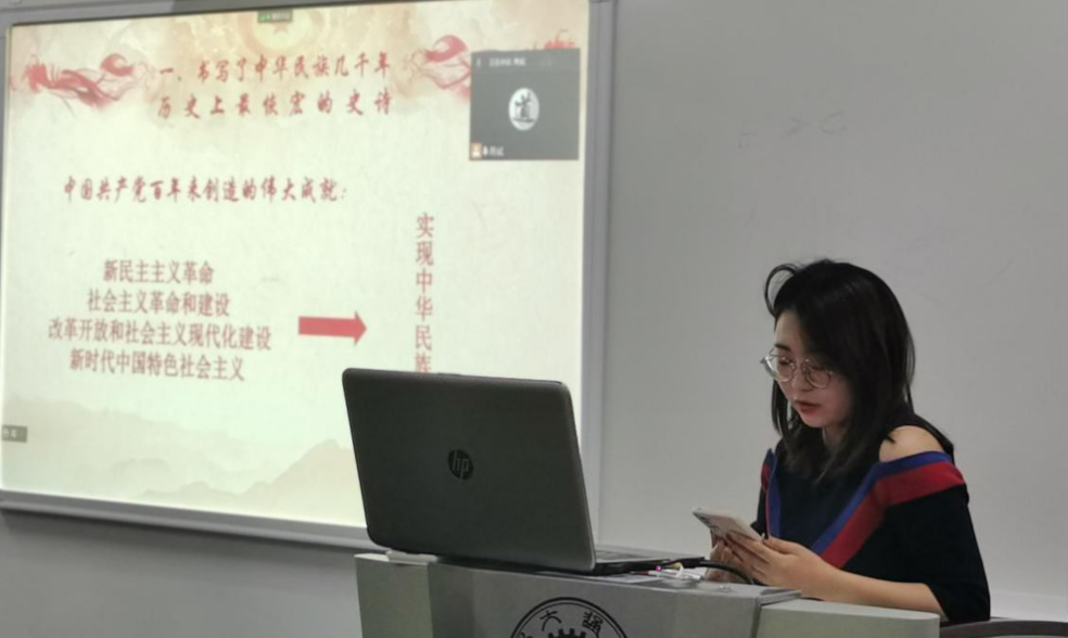 随后,党支书黄斌汇报党支部近期的工作情况。上半年,支部重视筑牢思想基础,累计理论学习14次;注重理论与实践相结合,“微光公益支教”获好评,志愿时长累计4337.6小时;突出支部模范榜样,在建党百年获得学院“先进党支部”,并对支部“优秀共产党员”进行表扬。