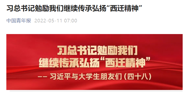 目前,该篇专题文章《习总书记勉励我们继续传承弘扬“西迁精神”》已在中国青年报正式刊发,同学们可点击下方链接继续深入学习。链接://mp.weixin.qq.com/s/M25N4cNVTS0unzdcmvfanQ