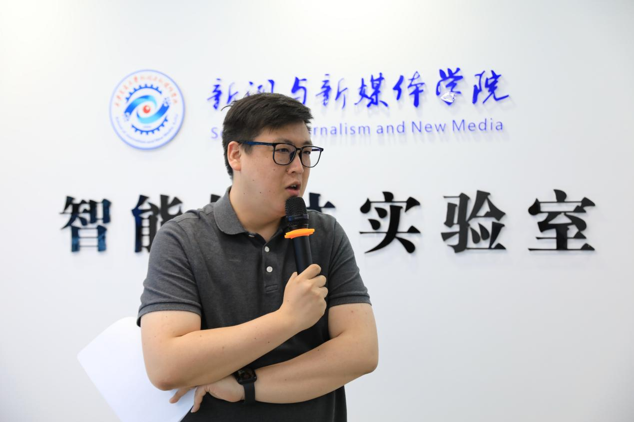 从事实验教学的张收鹏老师随后介绍了此次活动的筹备情况。他首先感谢学院给同学们提供了一个展示其新媒体创意的平台。此次活动共收集了近50件学院本科生创作的新媒体作品,经学院评选后将22部作品进行展映。他介绍说实验教学和实践实训是培养新闻传媒行业应用型人才的重要环节,能使学生把所学知识、理论、方法等转化为动手操作和创意生产能力。在实验教学中注重培养学生的全媒体技能,是对学生职业发展的关照,将为学生工作后尽快独立开展新媒体相关工作提供重要保证。