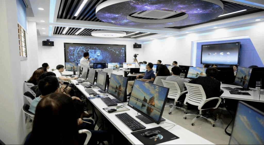 在有限的办学经费情况下,于2020年建设了两个理念超前、设施先进、特色突出的实验室。新媒体智慧学习工场涵盖新媒体体验版块、新媒体内容生产与运营版块、大数据分析版块、虚拟演播版块。积极开展人工智能、大数据技术等相关技能培训,联合开展职业培训及新媒体人才评价认证,打造服务地方政府智库、项目合作和内容建设等方式开启校企合作新模式,探索了一条从工作站到实验室再到产业基地的学科发展新路径。