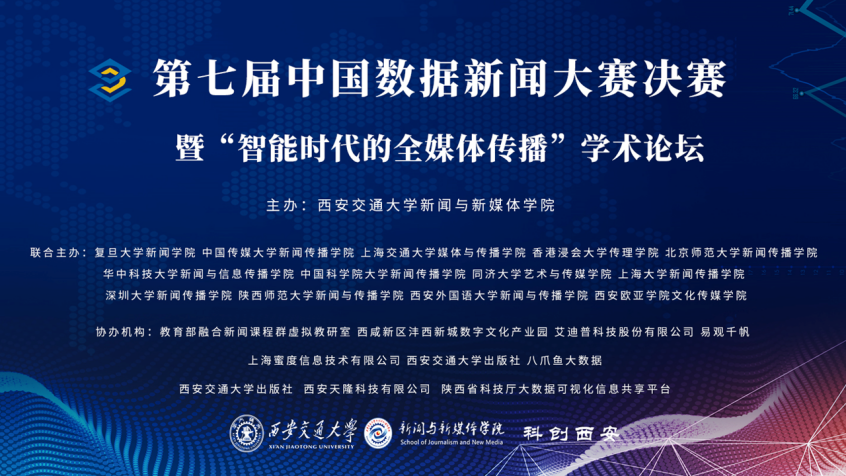 主办,复旦大学新闻学院、中国传媒大学新闻传播学院、上海交通大学媒体与传播学院、香港浸会大学传理学院、北京师范大学新闻传播学院、华中科技大学新闻与信息传播学院、中国社会科学院大学新闻传播学院、同济大学艺术与传媒学院、上海大学新闻传播学院、深圳大学新闻传播学院、陕西师范大学新闻与传播学院、西安外国语大学新闻与传播学院、西安欧亚学院文化传媒学院等联合主办,西安市科学技术局、教育部融合新闻课程群虚拟教研室、西咸新区沣西新城数字文化产业园、艾迪普科技股份有限公司、易观千帆、上海蜜度信息技术有限公司、八爪鱼大数据、黑料网