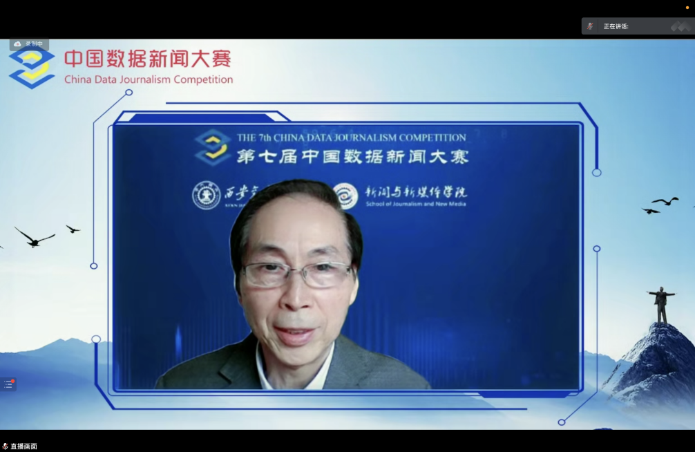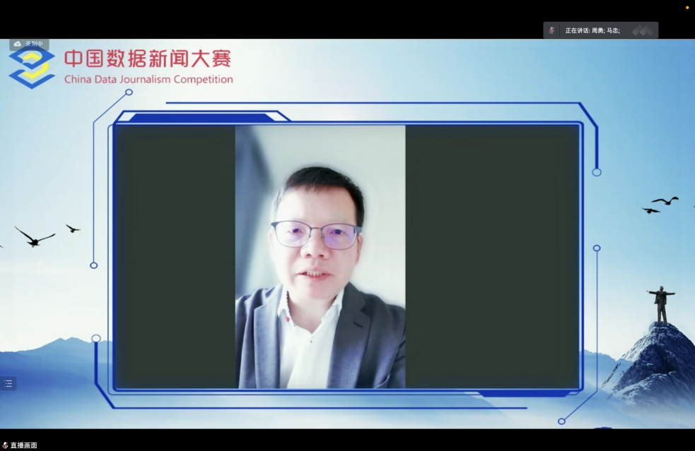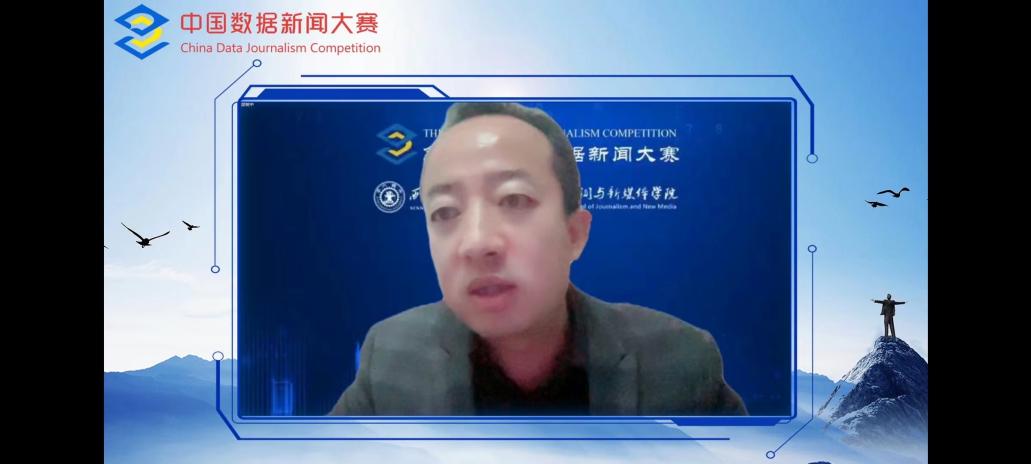 中国高等教育学会新闻学与传播学专业委员会理事长、中国人民大学新闻学院院长周勇在致辞中表示,在建设“新文科”的背景中,中国数据新闻大赛这样的实践平台,搭建了新闻传播学界、业界作品创作、展示和交流的桥梁,对于改善传统新闻教学理念、推动高校新闻传播教育模式与业界新闻生态数字化转型,至关重要。