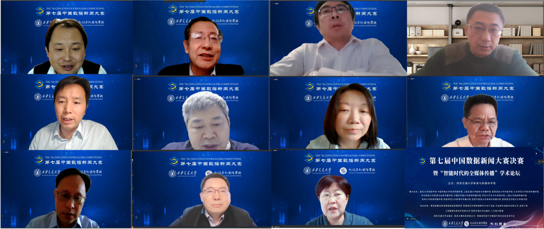 11月26日,第七届中国数据新闻大赛决赛暨“智能时代的全媒体传播”学术论坛在线上隆重举办。中国数据新闻大赛紧紧围绕学习贯彻党的二十大提出的“推进文化自信自强,铸就社会主义文化新辉煌”的战略部署,旨在贯彻落实中央关于推进媒体融合发展工作部署,依据教育部新文科建设的理念,搭建新闻传播教育学界、业界作品创作、展示与交流的桥梁,走文、理、艺交叉的新闻传播教育之路,为国家融媒体建设培养优秀的内容制作人才。