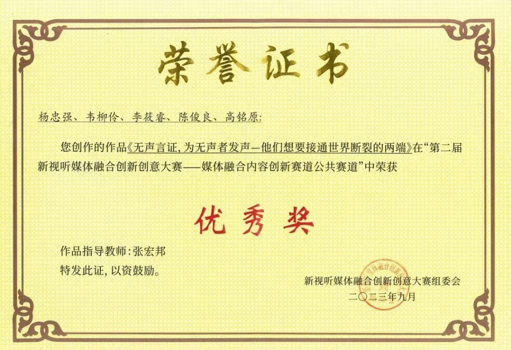 张宏邦教授指导的两个项目在媒体融合内容创新公共分赛道分别获得三等奖、优秀奖。