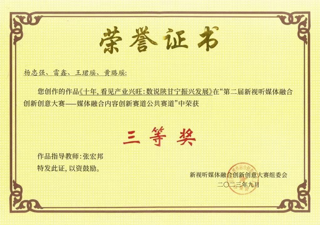 、武汉大学等高校团队在同一赛道参与竞争评比。最终一等奖由中经传媒和中央广播电视总台CGTN获得,二等奖由人民日报等单位获得。张宏邦教授所指导的作品“十年,看见产业兴旺:数说陕甘宁振兴发展”获得三等奖,另一作品“无声言证,为无声者发声——他们想要接通世界断裂的两端”获得优秀奖。