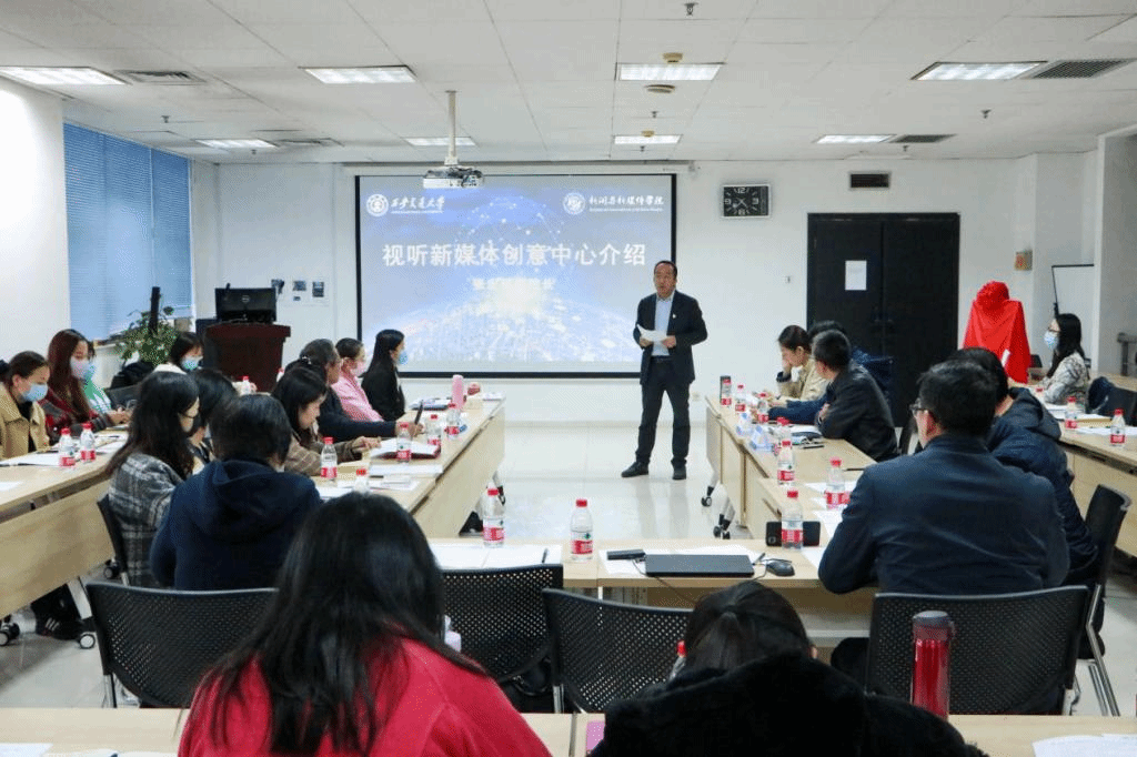 马忠院长主持。校党委宣传部工作人员、新闻与新媒体师生代表、视听新媒体创意中心第一届成员代表参加会议。