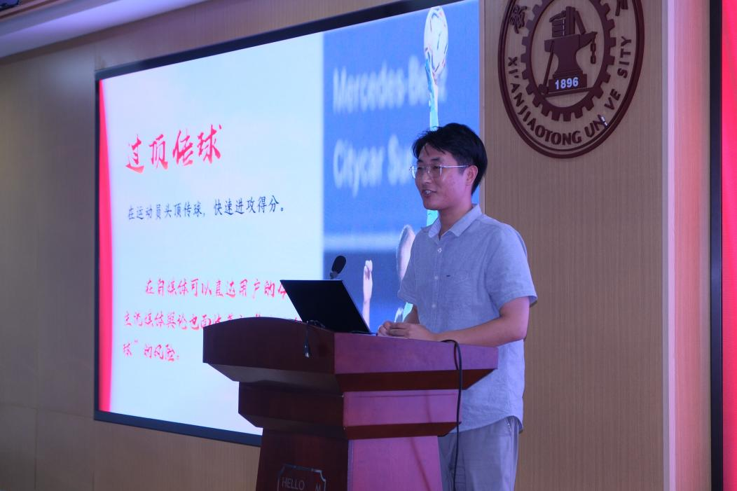 讲座中场,来自学生微宣讲团的张宇航同学以“从青年化阐释看文化安全”为主题进行宣讲。他将“过顶传球”的概念与舆论相联系,生动地阐述了自媒体时代对文化安全的思考。