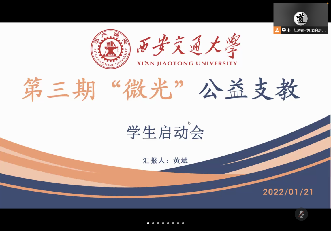 从2021年11月26日支教招募令发出,到前期准备中的数次运营团队会议,再到志愿者启动会、志愿者政治培训会,终于,2022年1月21日,第三期“微光”支教在学生启动会中正式拉开帷幕,为同学们未来16天的全速奔跑提供助力。