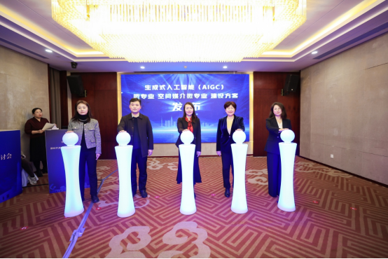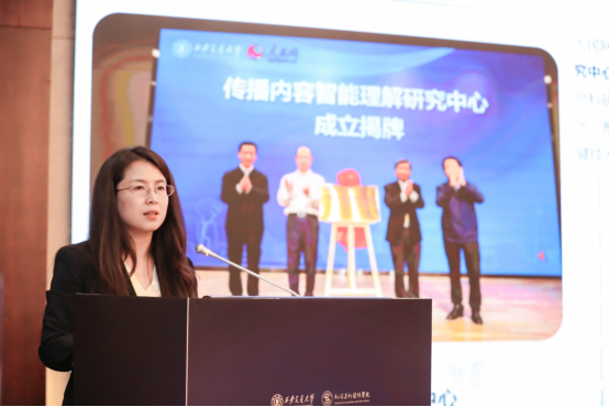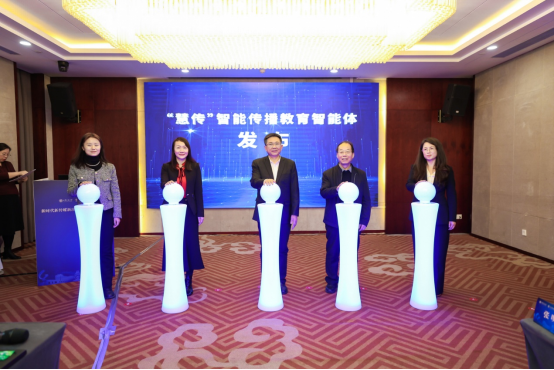 教授李明德,教务处副处长李涓,孙鹤立共同发布“慧传”智能传播教学大模型。